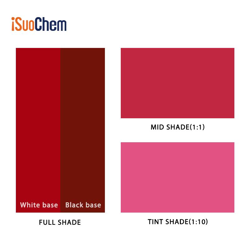 3. Orgánico 48:2 pigmento rojo Ofrece "buena resistencia a la luz y al calor", pero especifica que tiene "poca resistencia a los ácidos y a los álcalis".